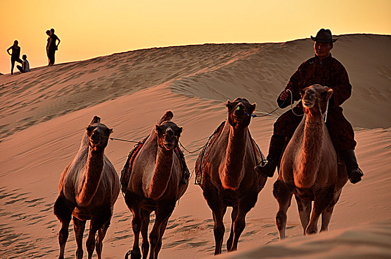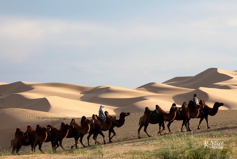 Camel rides through the magnificent Khongor Sand Dunes, the largest dunes in Mongolia.