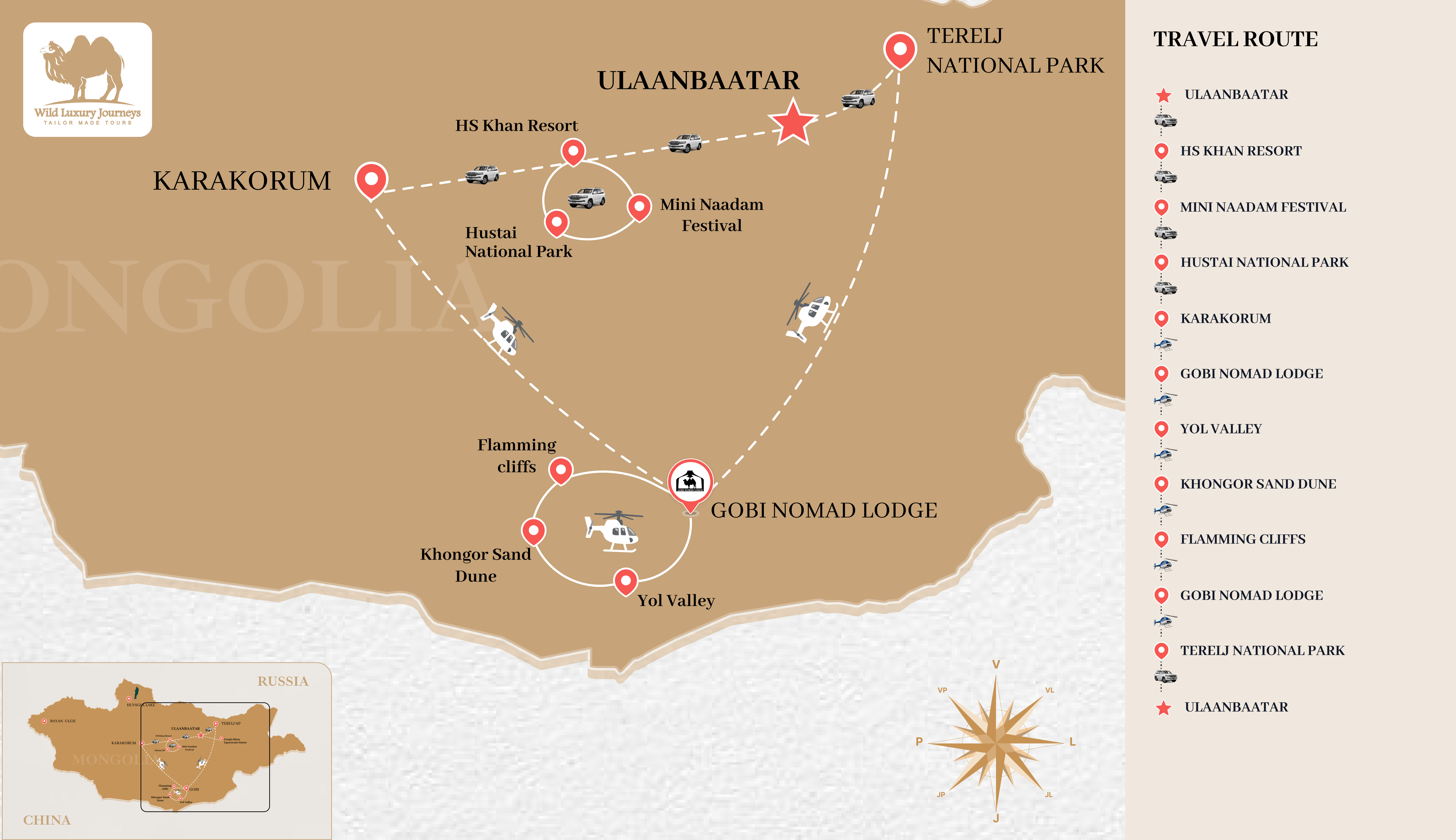We offer adventurous and high-end travelers an ultra-luxury tour with highlights such as experiencing Mongolian nomadic life and travel by private helicopter.